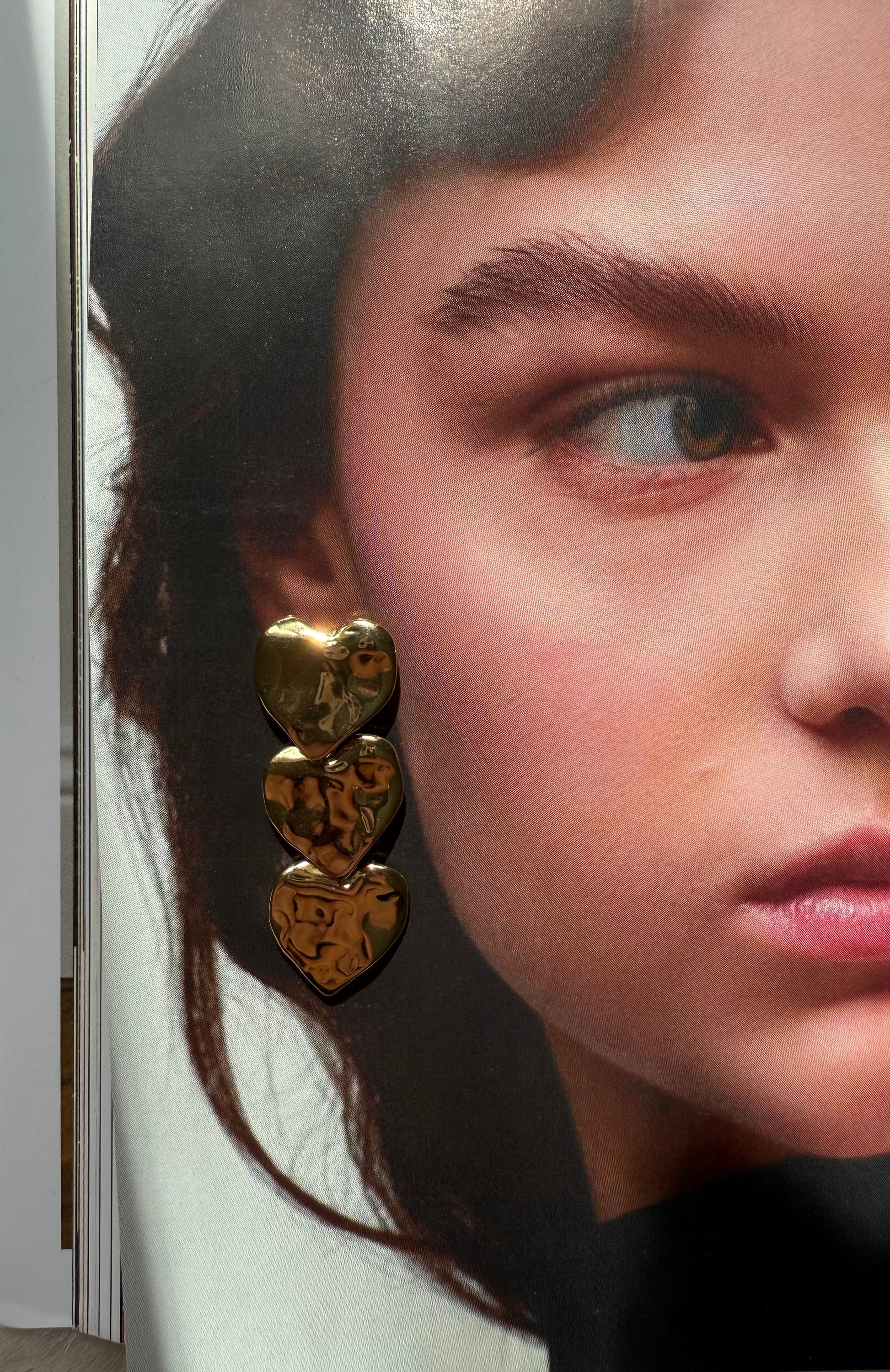 Nou d’oreilles pendantes en acier inoxydable composé de 3 cœurs martelés.