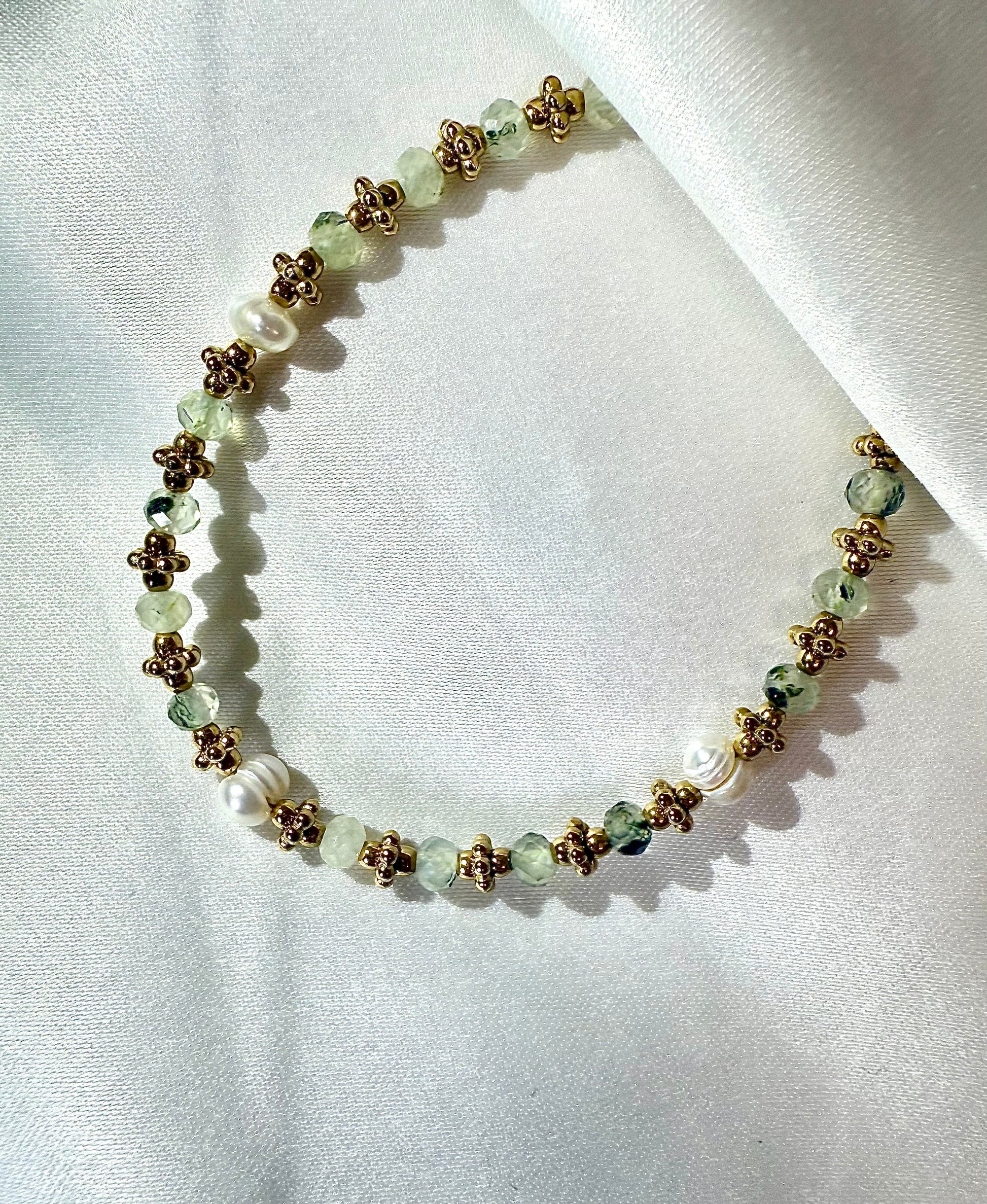 Bracelet sur câble composé de pierres naturelles rondes, de perles d'eau douce et de perles en acier inoxydable.